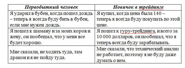 Хотя даже в этом сравнении, новичок уступает первобытному человеку в сообразительности. Первобытный человек, ходил на охоту с одним оружием, которым он владел в совершенстве. Новичок, обвешивает себя десятками индикаторов, инструментов анализа и пятью мониторами, думая, что именно это залог к успеху. Хотя это лишь подражание, пантомима на профессионалов.